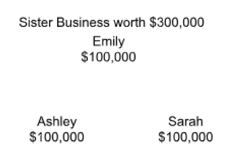 The other sisters though will want to keep the business going. By having the insurance Ashley will get $50,000 to buy half of Sarah’s share of the business as will Emily and Sarah’s immediate family will get the $100,000. Now, the other sisters will now be 1⁄2 owner instead of 1⁄3 owner.
